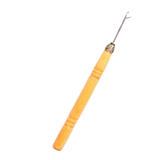 Agulha usada para colocação no método microlink, com mechas já preparadas na queratina. A ponta abre e fecha facilitando e agilizando o trabalho de colocação.