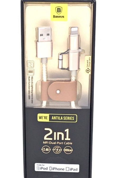 *Para escolher conexão Micro Usb é só puxar o plug Lightning. O conetor Lightning pode ser usado com ou sem o cabo nylon*.