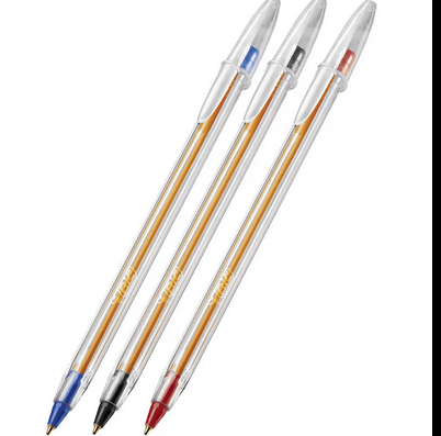 Caneta esferográfica clássica e favorita em milhares de lares, escritórios e escolas no mundo. Possui corpo hexagonal que assegura o conforto na escrita e transparente para visualização da tinta. Tinta de alta qualidade, que seca rapidamente evitando borrões na escrita. Maior Durabilidade: Escreve até 2 Km. Escrita macia. Fabricada com a quantidade certa de matéria-prima para uso prolongado e seguro. Não contém PVC. Possui tampa da mesma cor da tinta e também é ventilada em conformidade com padrão ISO. Na ponta conta com uma esfera de Tungstênio, perfeita e muito resistente, quase mais duras que o diamante. 100% das esferográficas são feitas por um processo altamente controlado. Desde seus início em 1950, a Companhia vem aperfeiçoando as máquinas e os processos de fabricação necessários para produzir canetas de alta qualidade e produzidas em massa.