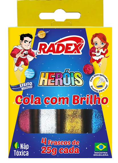 A Cola colorida Radex tem uma gama de cores ideal para estimular a criatividade. Com um bico aplicador que facilita a utilização em seus projetos e trabalhos escolares.