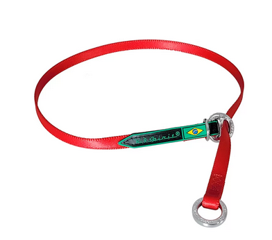 Fita de Poliéster, Ferragem cromada com solda, Aviamentos injetados em nylon e etiqueta de borracha