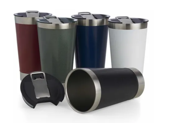 Copo resistente, durável e atemporal, parede dupla com isolamento a vácuo, de aço inoxidável 201 (18/8), livre de BPA, com tampa, e com abridor incluso embutido.
