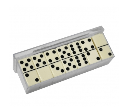 Composição da Embalagem: jogo de dominó com 28 peças, com caixa acrilico