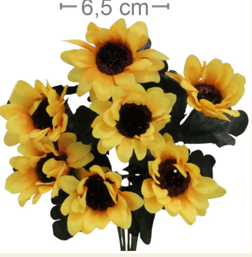 7 Galhos de girassol artificial com folhas verdes feito em tecido sintético, utilizado para confecção de porta guardanapos, decoração, festa junina, etc.