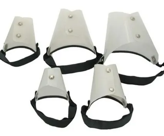 Em forma de cone, borda que vai a volta do pescoço é revestida com borracha protegendo o pescoço.