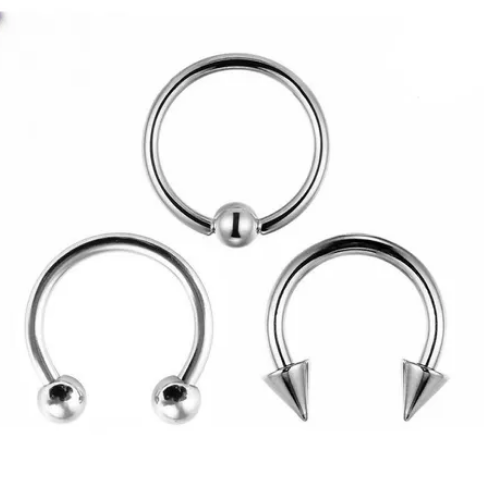 Kit 3 Piercings Ferradura Spike Captive 6, 8, 10, 12mm Aço
