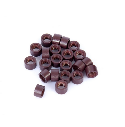 Anéis de metal pintados com tinta especial a prova d´água, sem revestimento interno. Utilizados para colocação de mega hair com mechas já na queratina.