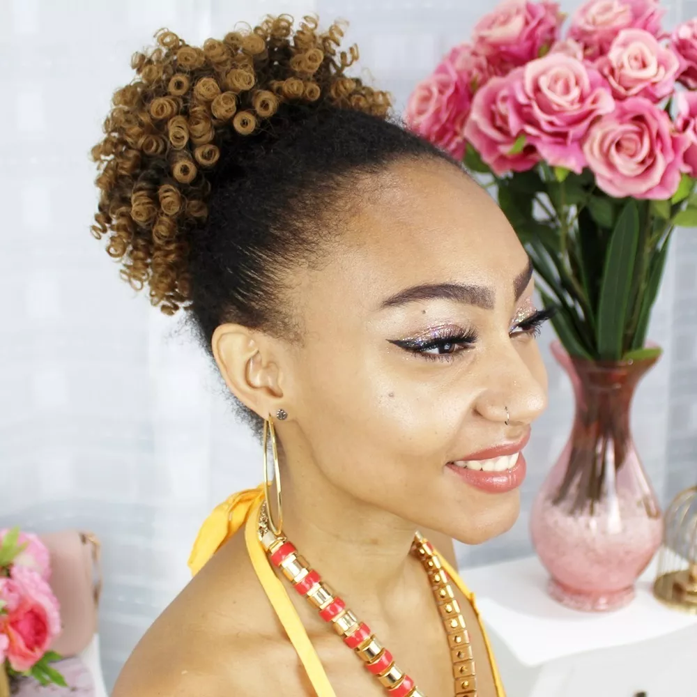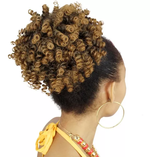 Puff Lindo Aplique Ombre Mel Cacheado Coque AfroPuff Lindo Aplique Ombre Mel Cacheado Coque Afro