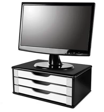 Suporte para monitor black piano com 3 gavetas brancas