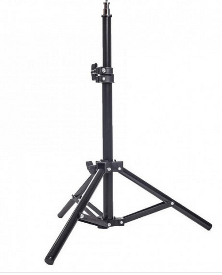 Tripé com 02 seções em alumínio anodizado preto, com pino 3/8 , para os iluminadores e flashes de estúdio. As seções do tripé são travadas com tensionadores especiais resistentes. Altura máxima = 70 CM. Altura mínima = 40 cm. Esse tripé é especialmente indicado para estúdio fotográfico.